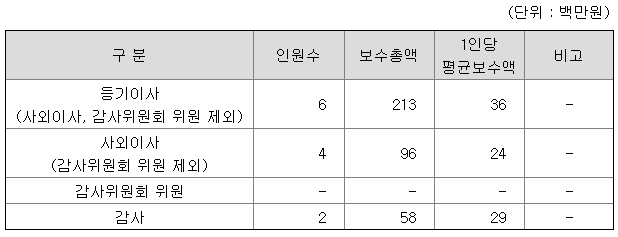 등기이사는 3천6백만원을, 사외이사는 2천4백만원을, 감사는 2천9백만원을 받는 것으로 나왔다.