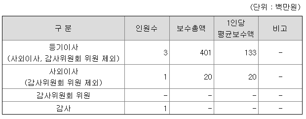 등기이사는 1억3천만원, 사외이사는 2천만원이다.