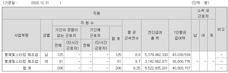 평균 근속연수는 남자 8년 8개월, 여자 9년 7개월로 높은 편이다.
