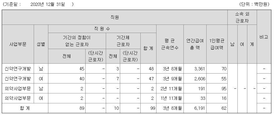 레고켐바이오 2020년 직원 연봉 정보이다.