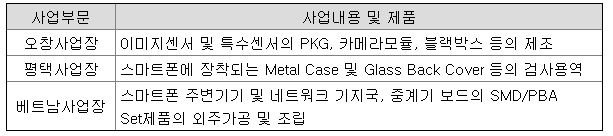 테라셈은 이미지센서 등의 패키지제조 및 카메라모듈과 Set제품 등을 제조, 스마트폰용 메탈케이스 및 글라스백커버를 검사, SMD/PBA와 Set조립 및 외주가공 사업을 하고 있다.