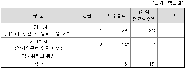 송원산업 등기이사는 2억4천만원, 사외이사는 7천만원의 평균연봉을 받고 있음을 알 수 있다.