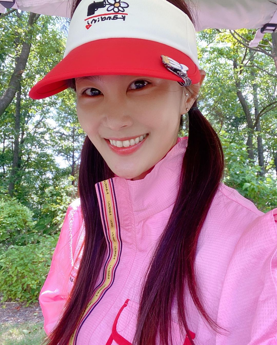 핑크빛 골프웨어로 귀여움도 더한 김지민이다.