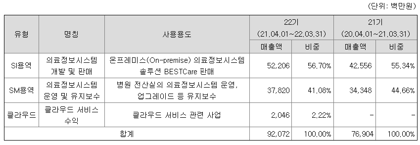 다만, 이지케어텍의 의료정보시스템 개발 및 공급 프로젝트의 가격은 라이센스비 + 용역비(인건비, 제경비, 이윤) + 인프라 등으로 구성되고, 의료정보시스템 유지보수의 가격은 용역비로 구성되는 점에서 용역비의 변동이 이지케어텍 주요 제품의 가격변동에 큰 영향을 미친다고 볼 수 있습니다.