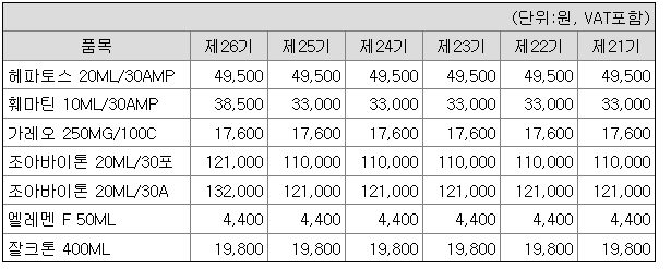 제약업의 특성상 가격 변동요인은 의료보험 수가의 변동 수입자재의 가격변동과 환율변동에 주로 영향을 받습니다. 당사의 제품은 생산체제가 다품종 소량 생산 체제이기 때문에 어느 특정 제품의 가격변동추이를 측정하기 어려워 각 제품유형별 매출액 기준으로 단순 평균 가격을 적용하여 제품들의 가격추이를 산출하였습니다.