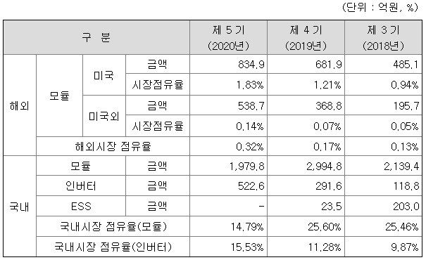 ※ 셀, 설치용역 및 기타 매출 제외 기준.