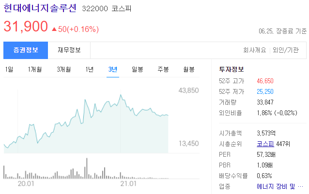 3년 전의 주가 13,000원 대에서 현재 31,900원의 주가 추세를 보여주고 있어 2.5배 정도 상승하였다.