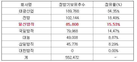 시장점유율(국내 동일업종 방적설비 보유현황으로 비교함)