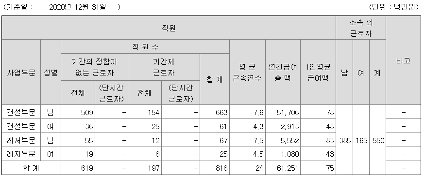 ※ 상기 직원수 및 급여 총액은 2020년 12월 31일 재직자 기준자료입니다.