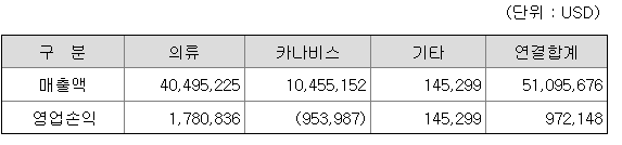 연결회사의 현재 주요 사업은 의류 소매 사업부문, 카나비스 사업부문으로 구성되어 있습니다.