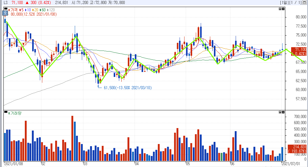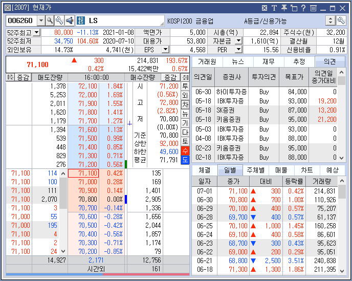 LS 는 현재 주가 71,100원으로 시총 2조 2천8백억원대이다.