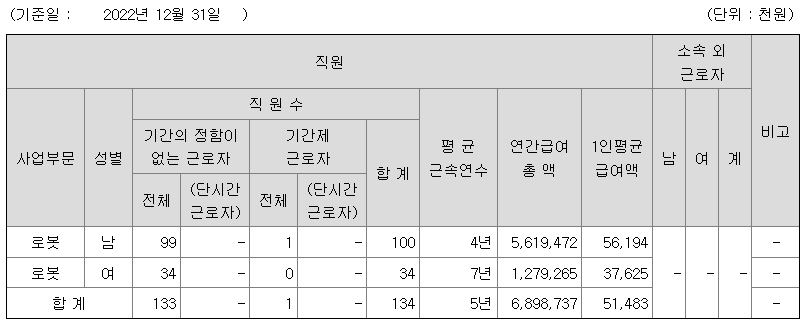로보티즈 2022년 평균 근속연수는 5년으로 나왔다.