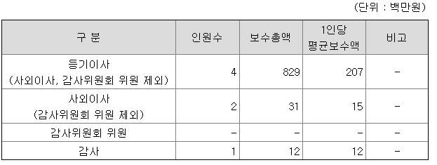 등기이사는 연봉 2억원, 사외이사는 천5백만원, 감사는 천2백만원의 연봉을 받는다.