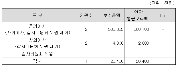 등기이사는 2억6천만원, 사외이사는 2천만원의 연봉을 받는 것으로 나왔다.