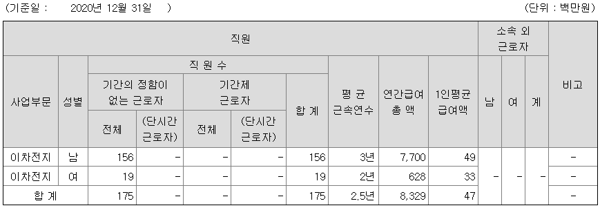 하나기술의 2020년 직원 평균연봉 정보이다.
