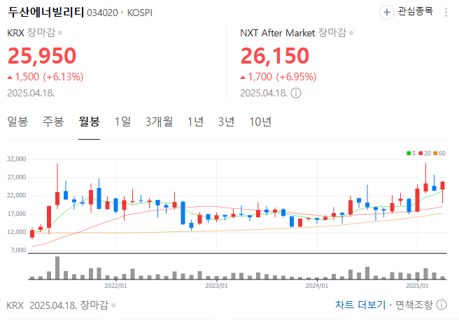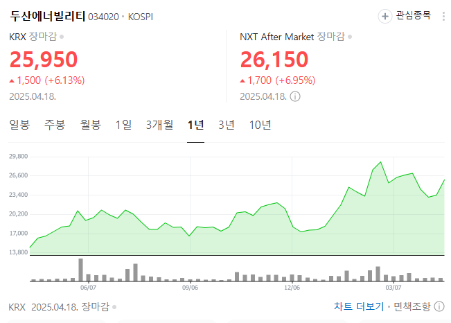 2024년 중반까지만 해도 두산에너빌리티 주가는 15,000원대에서 맴돌았어요. 하지만 2025년 4월 현재, 26,000원 안팎으로 훌쩍 뛰었습니다.