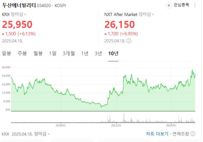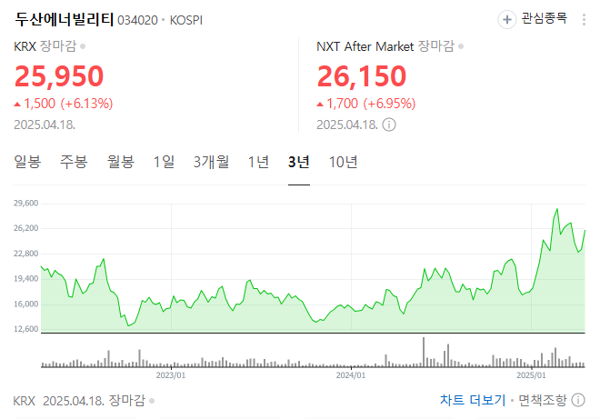 2024년 중반까지만 해도 두산에너빌리티 주가는 15,000원대에서 맴돌았어요. 하지만 2025년 4월 현재, 26,000원 안팎으로 훌쩍 뛰었습니다.