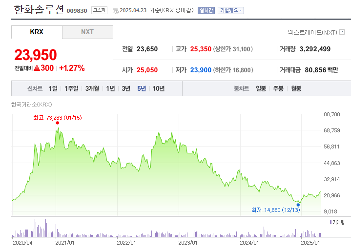 태양광 사업과 수소 에너지, 첨단소재 부문에서 공격적인 투자와 함께 구조적 재편이 이루어지면서, 한화솔루션 주가는 중장기 투자자들에게 다시 주목받는 흐름을 보이고 있습니다.