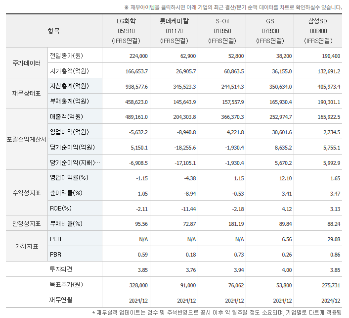 - 석유화학 부문: 과거 LG화학의 핵심. 하지만 최근 글로벌 경기 둔화와 유가 하락의 영향으로 수익성이 약화되었습니다.