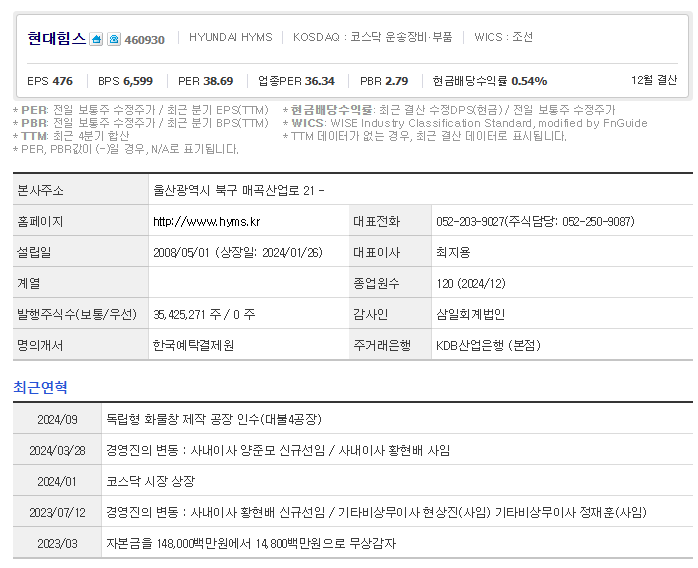 2024년 현대힘스는 매출 2,231억 원, 순이익 165억 원을 기록하며 전년 대비 성장세를 보였습니다.