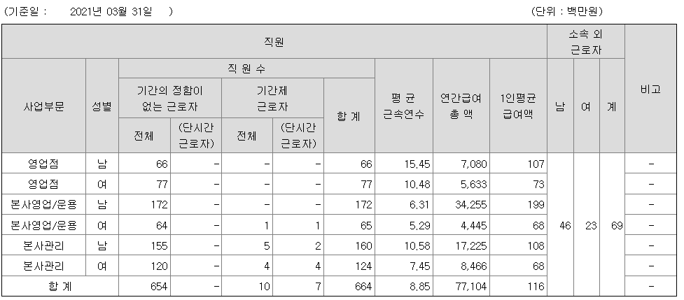 주2) 보수총액: 작성기간(2020.04.01~2021.03.31)중 지급한 총액으로, 임기만료(6.19) 및선임(6.19) 등기이사의 보수총액 포함