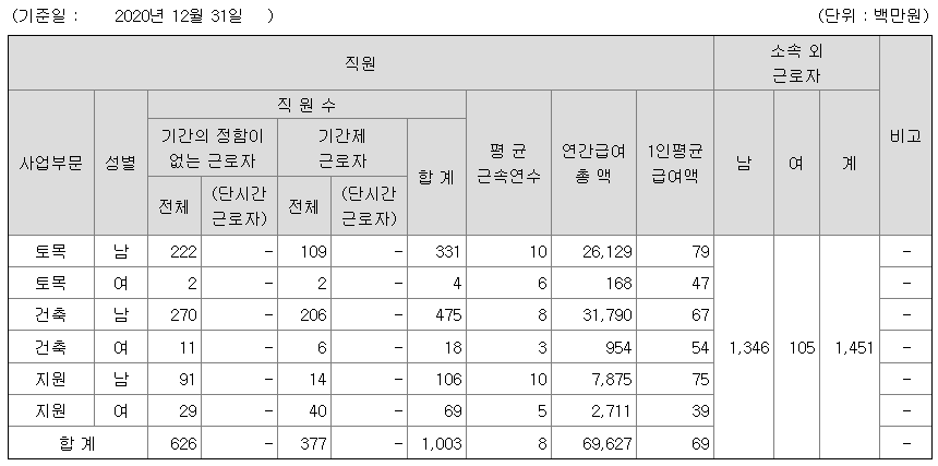 남자평균 연봉은 토목 7천9백만원, 건축 6천7백만원, 지원 7천5백만원으로 나왔다.