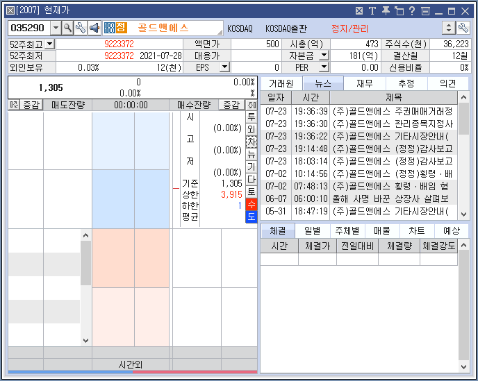 골드앤에스는 현재 거래정지중이다.