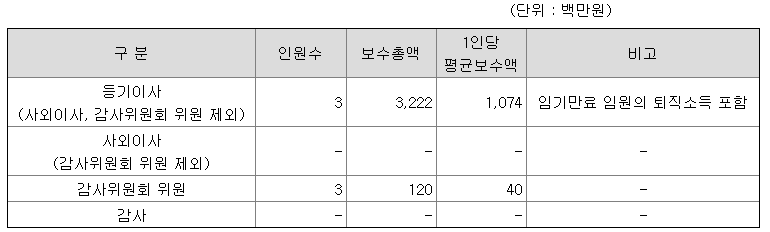 주2) 보수총액: 작성기간(2020.04.01~2021.03.31)중 지급한 총액으로, 임기만료(6.19) 및선임(6.19) 등기이사의 보수총액 포함